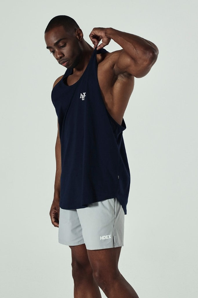 HDEX Baju Korea Olahraga Back Slogan Balance Sleeveless Shirt Dark Navy Pria Fitness