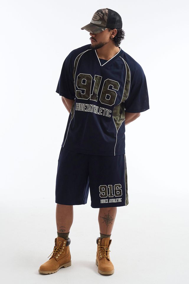 HDEX Celana Korea Olahraga Camo Block Mesh Bermuda Shorts Navy Pria Fitness