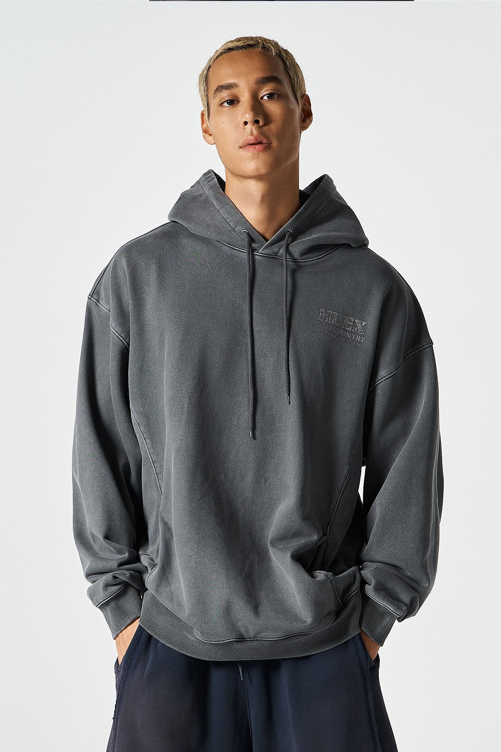HDEX Baju Korea Olahraga Core Small Logo Pigment Hoodie Charcoal Jaket Pria Fitness