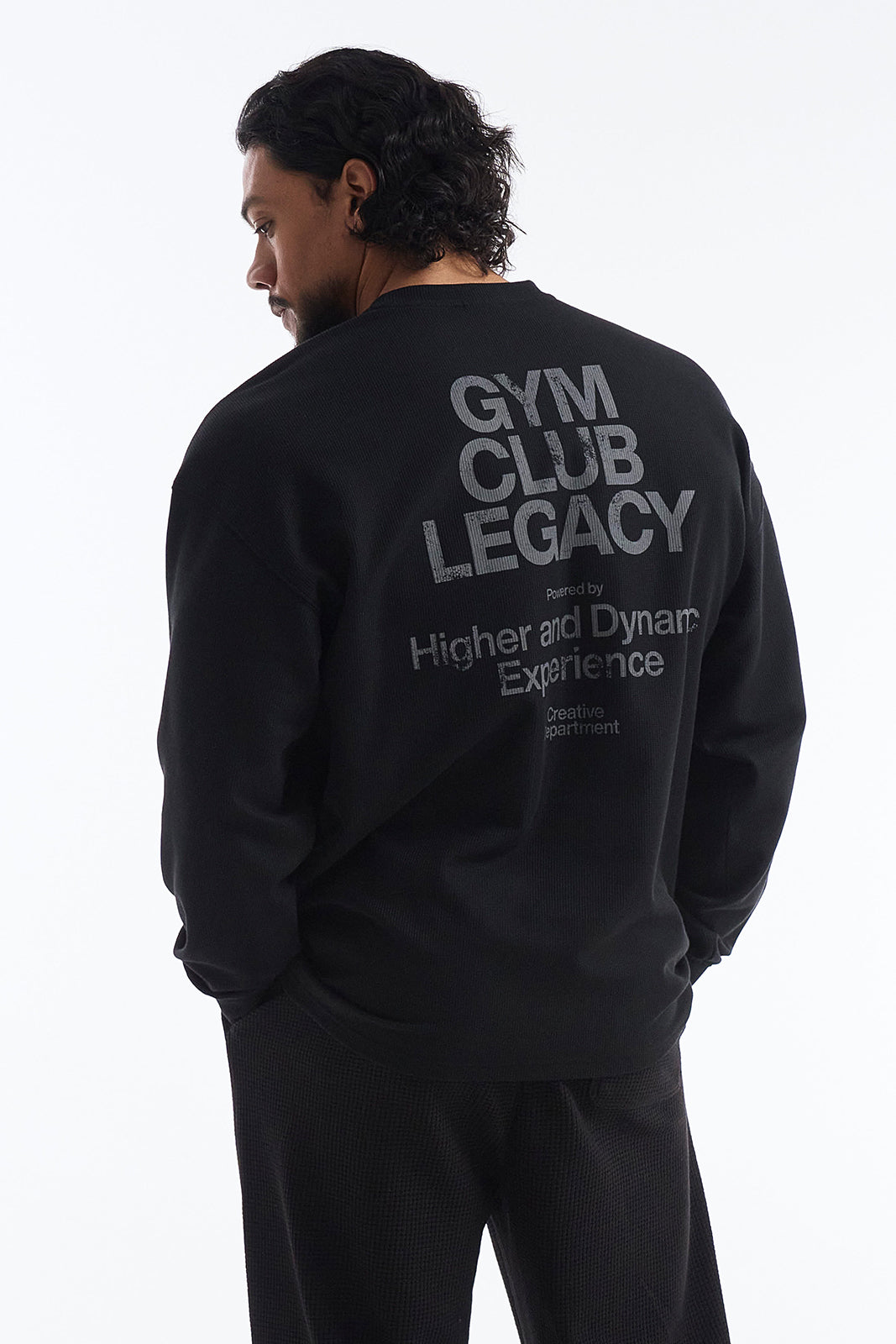 HDEX Baju Korea Olahraga Core Waffle Giant Fit Long Sleeve Black Pria Fitness