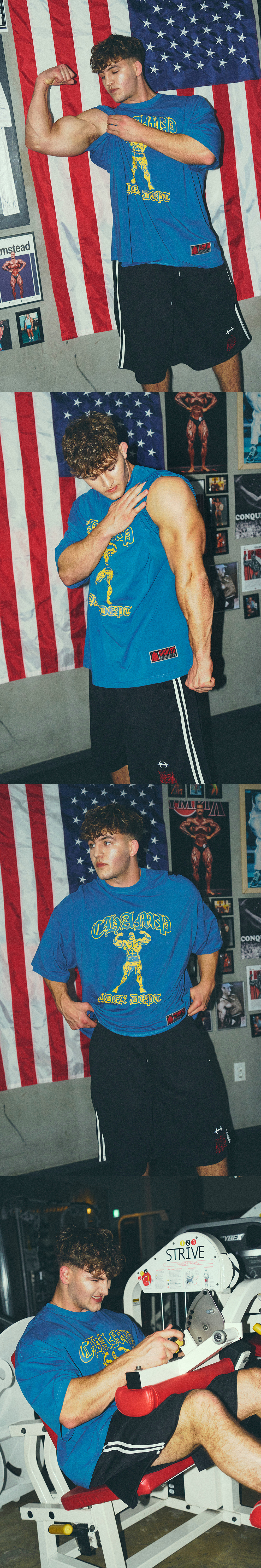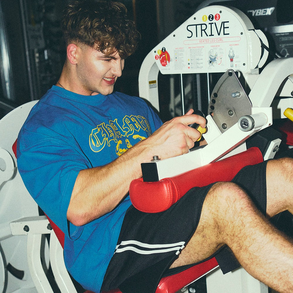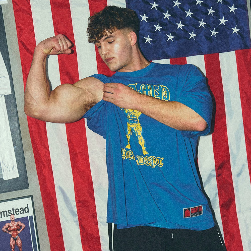 [GYM CLUB LEGACY PRE-ORDER] HDEX Baju Korea Olahraga Old Champ Giant Fit Short Sleeve Deep Blue Pria Fitness