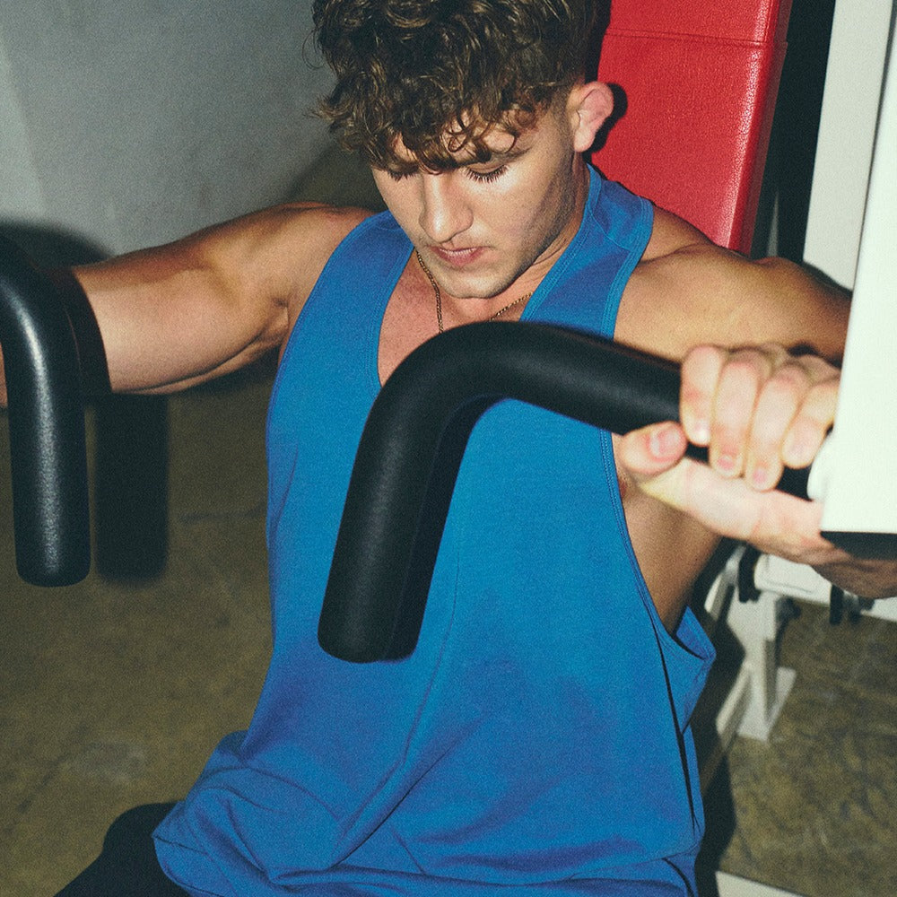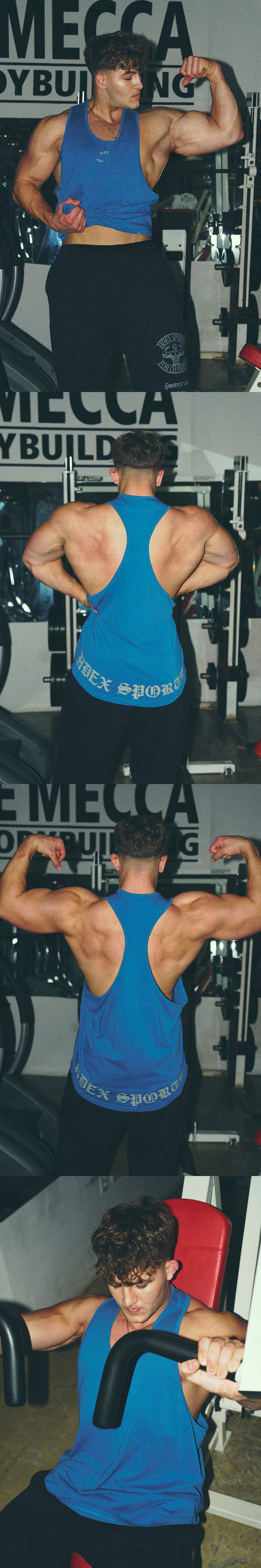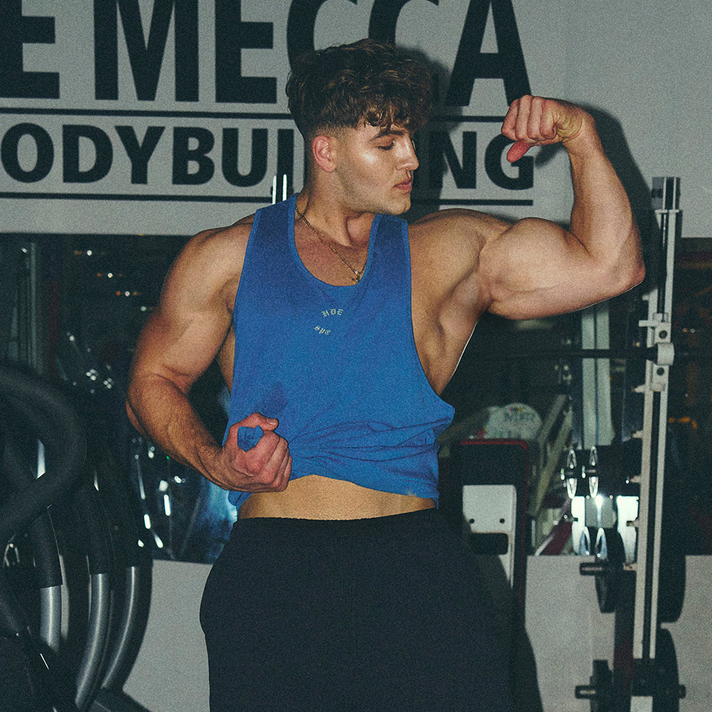 [GYM CLUB LEGACY PRE-ORDER] HDEX Baju Korea Olahraga Old English Back Logo Stringer Deep Blue Pria Fitness