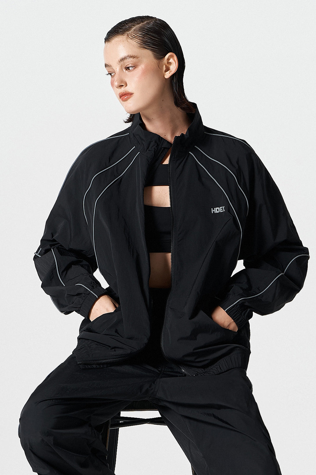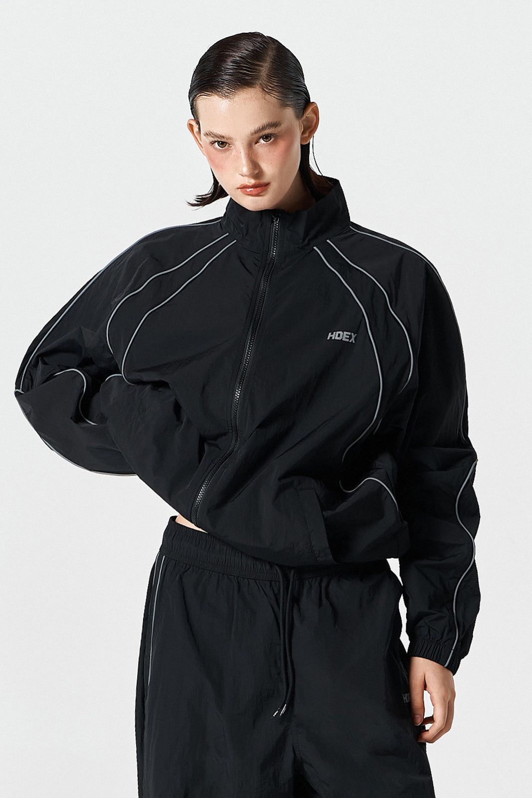 HDEX Baju Korea Olahraga Piping Nylon Jacket Black Jaket Pria Wanita Fitness