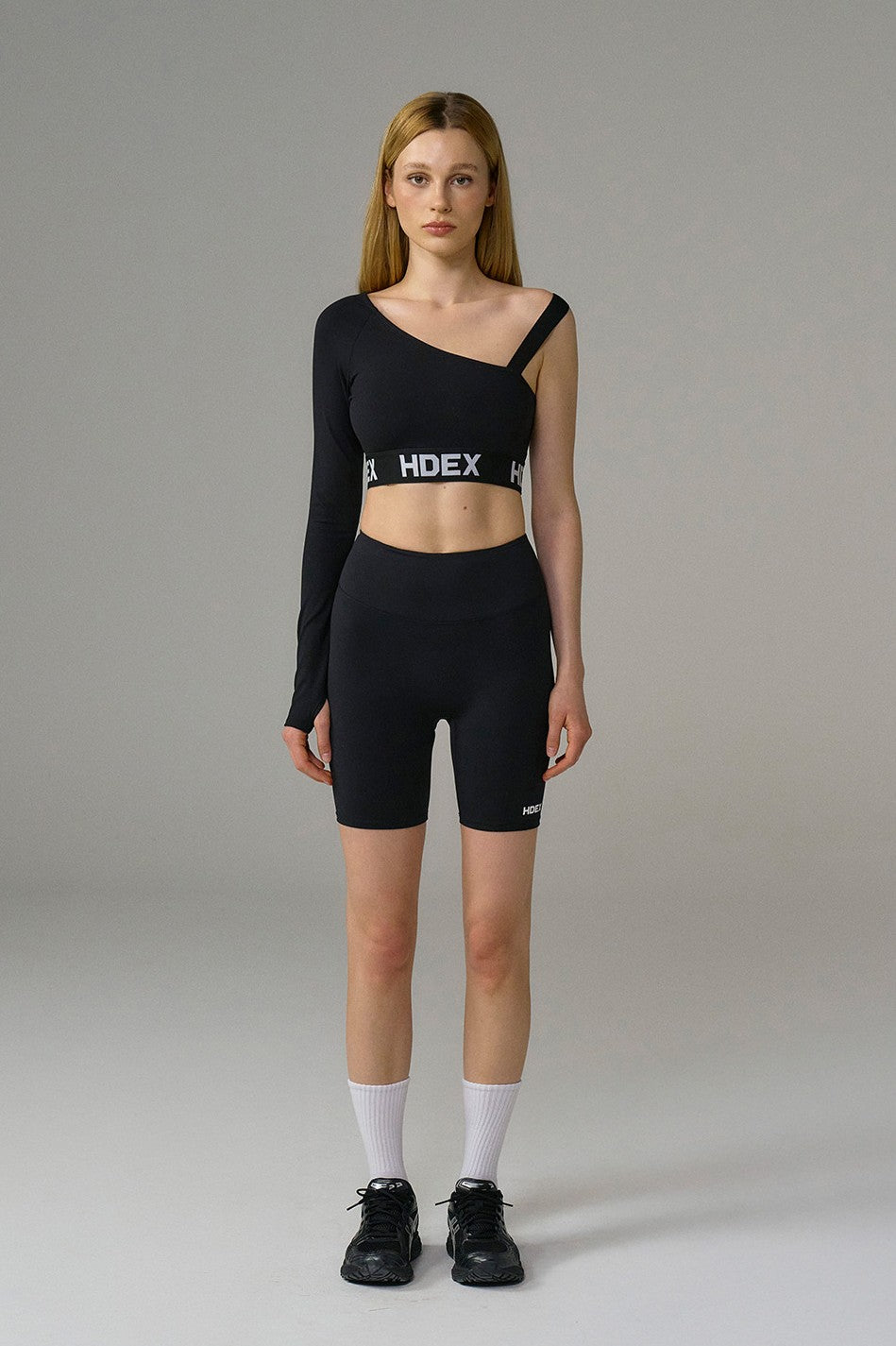 HDEX Baju Korea Olahraga Pro One-Shoulder Crop Long Sleeve Black Wanita Fitness