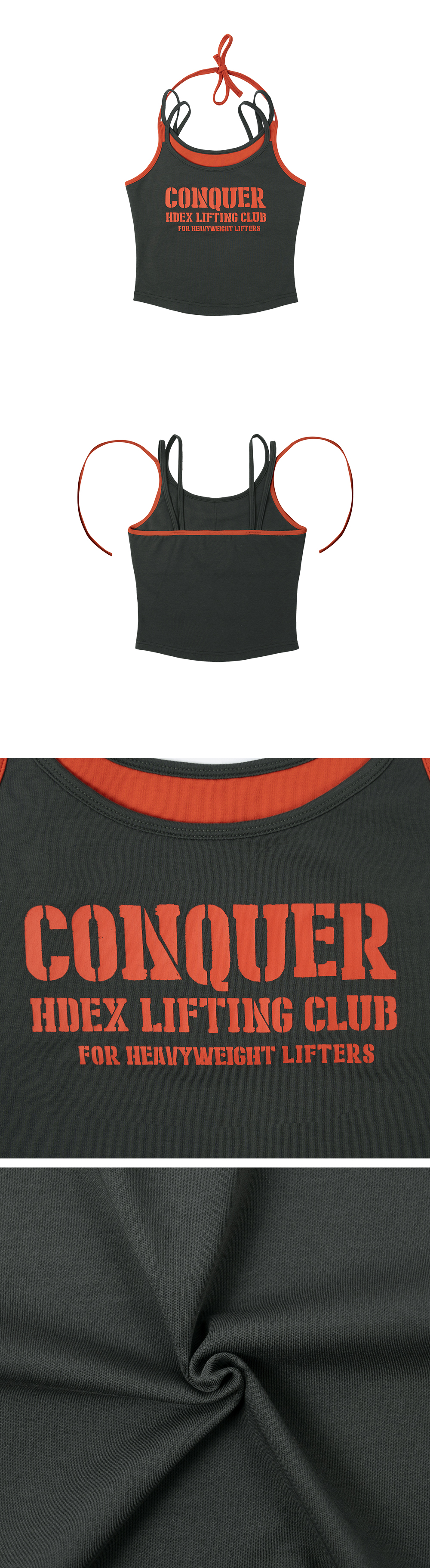 [GYM CLUB LEGACY PRE-ORDER] HDEX Baju Korea Olahraga Women`s Double String Halter Tank Top Charcoal Wanita Fitness