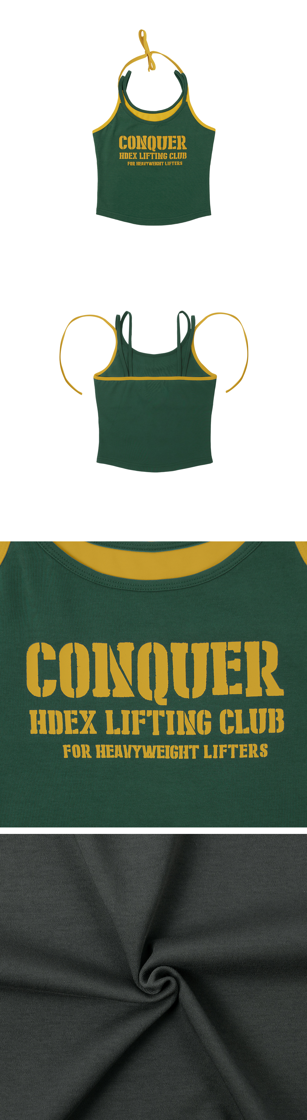 [GYM CLUB LEGACY PRE-ORDER] HDEX Baju Korea Olahraga Women`s Double String Halter Tank Top Deep Green Wanita Fitness